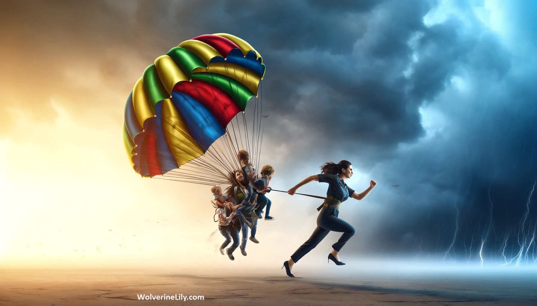 Children are like vast parachutes, Tethered to a mother’s back. They tug with mighty force, Holding her back, Preventing her from chasing her dreams.