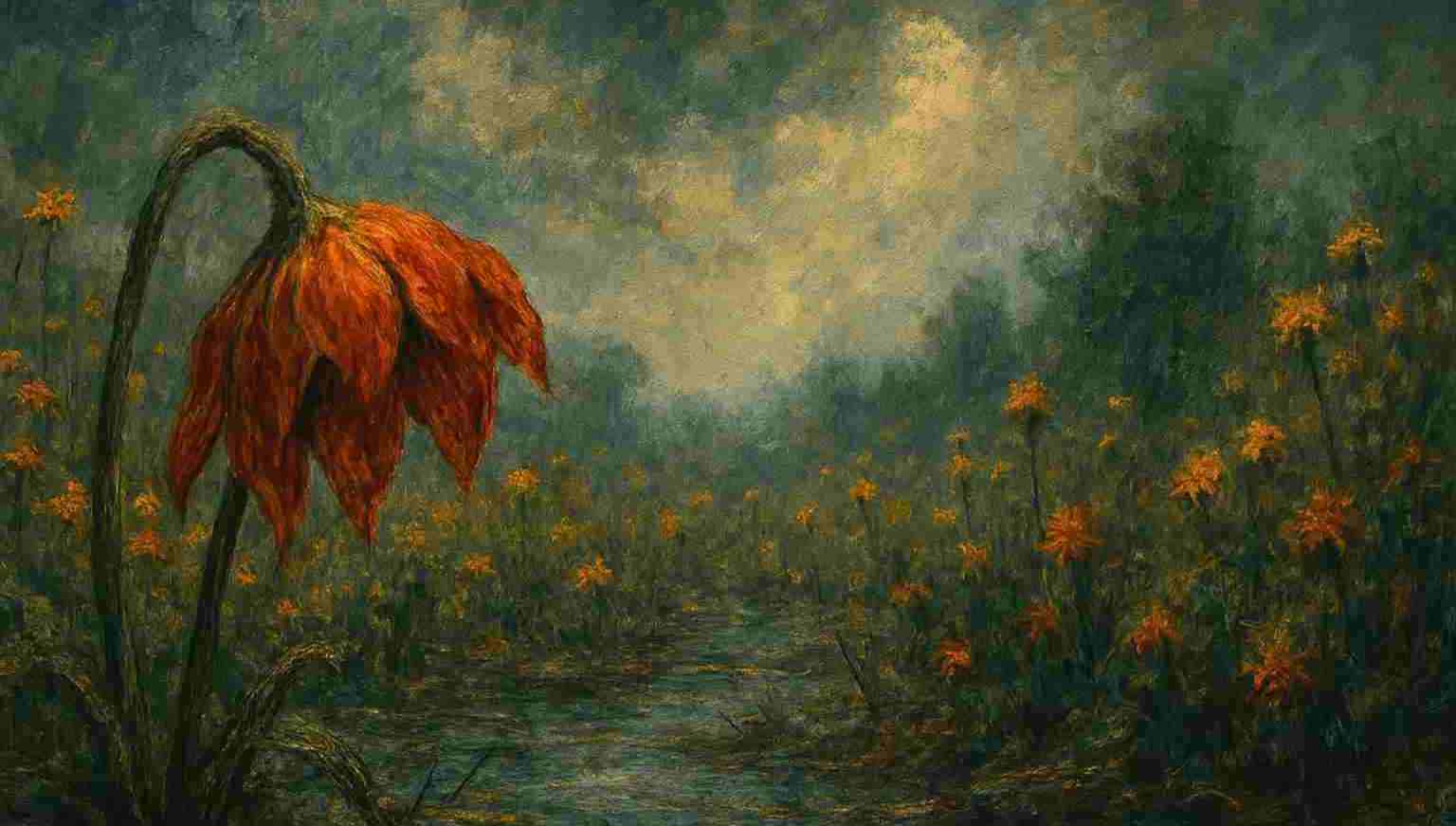 And then it rained, not to nourish or cleanse. Poured. Unstoppable— the ground swelled, my petals sagged, roots dislodged, my garden drenched to swamp.